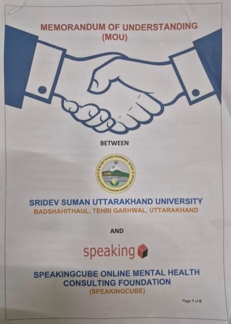 टिहरी गढ़वाल, 21 अगस्त 2025। श्रीदेव सुमन उत्तराखंड विश्वविद्यालय, बादशाहीथौल और स्पीकिंगक्यूब ऑनलाइन मेंटल हेल्थ कंसल्टिंग फाउंडेशन के बीच मानसिक स्वास्थ्य, शोध और सामाजिक उद्यमिता को बढ़ावा देने हेतु पाँच वर्षीय एमओयू पर हस्ताक्षर किए गए।