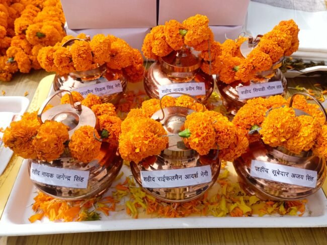 टिहरी गढ़वाल 4 अक्टूबर। शहीदों के सम्मान और बलिदान को अमर करने के उद्देश्य से आयोजित शहीद सम्मान यात्रा–2 के तहत टिहरी जिले के शहीदों के आंगन से एकत्र की गई पवित्र मिट्टी शनिवार को ताम्र कलशों में लैंसडाउन के लिए रवाना की गई।