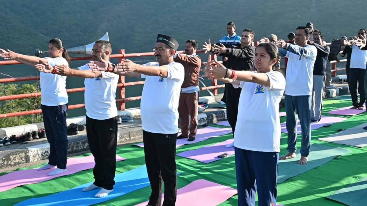 डोबरा चांठी पुल पर योग कार्यक्रम आयोजित