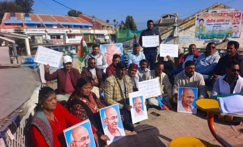 मनरेगा के प्रावधानों में बदलाव के विरोध में कांग्रेस का धरना