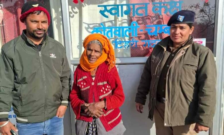 टिहरी पुलिस ने खोई बुजुर्ग महिला को बेटे से मिलाया, आशीर्वाद लेकर लौटीं घर