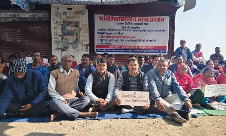 टिहरी गढ़वाल। केमसारी पीपली टीन सेड के टिहरी बांध विस्थापितों को मालिकाना हक दिलाने की मांग को लेकर संघर्ष समिति का धरना आज पांचवें दिन भी जारी रहा ।