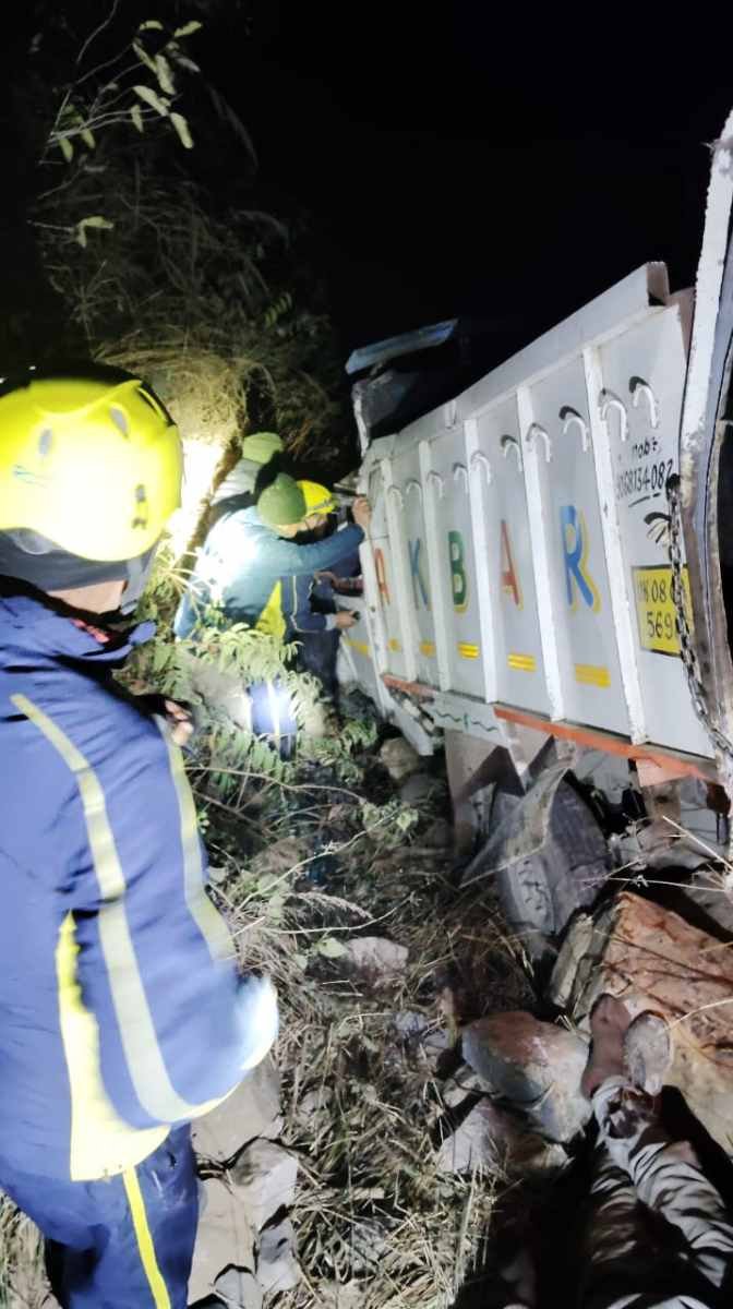 टिहरी में अटाली गंगा के पास ट्रक 150 मीटर खाई में गिरा, SDRF ने 3 घायलों को बचाकर अस्पताल पहुंचाया