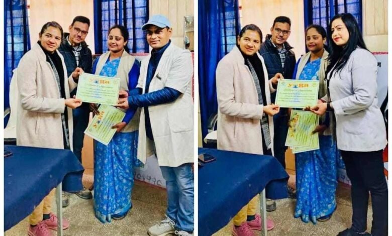 टिहरी गढ़वाल 25 फरवरी, 2026 । जिला मुख्यालय स्थित जिला चिकित्सालय बौराडी के आयुष विंग की टीम को जिलाधिकारी टिहरी गढ़वाल नितिका खण्डेलवाल द्वारा प्रशस्ति प्रमाण पत्र प्रदान कर सम्मानित किया गया।