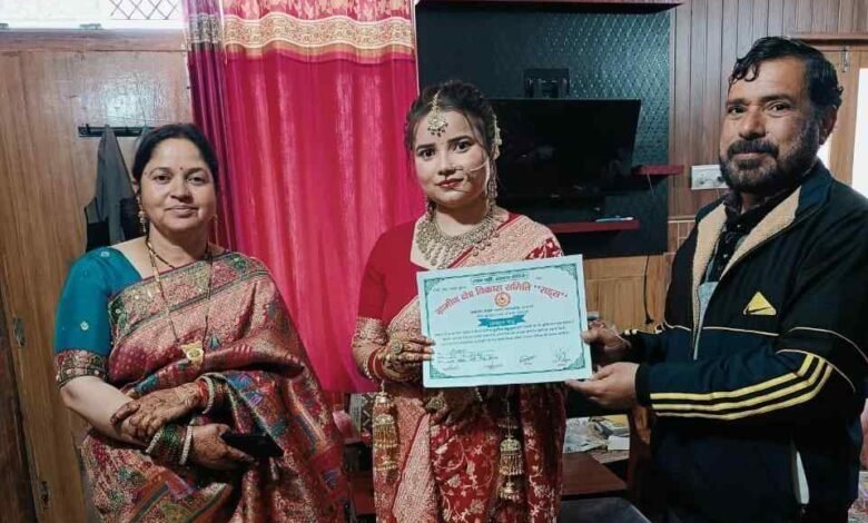 नशामुक्त विवाह बना समाज के लिए प्रेरणा— आंचल को किया गया सम्मानित
