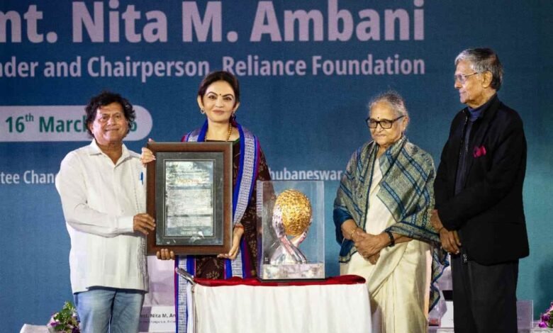 मानवता और सेवा की मिसाल: नीता एम अंबानी को भुवनेश्वर में ह्यूमैनिटेरियन अवॉर्ड 2025