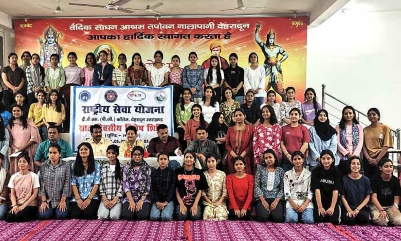 देहरादून, 13 मार्च 2026 । डीबीएस (पीजी) कॉलेज देहरादून की राष्ट्रीय सेवा योजना (एनएसएस) की यूनिट 19 और 20 की 100 छात्राओं का संयुक्त सात दिवसीय विशेष शिविर रायपुर स्थित वैदिक साधन आश्रम, तपोवन नालापानी में शुरू हो गया।