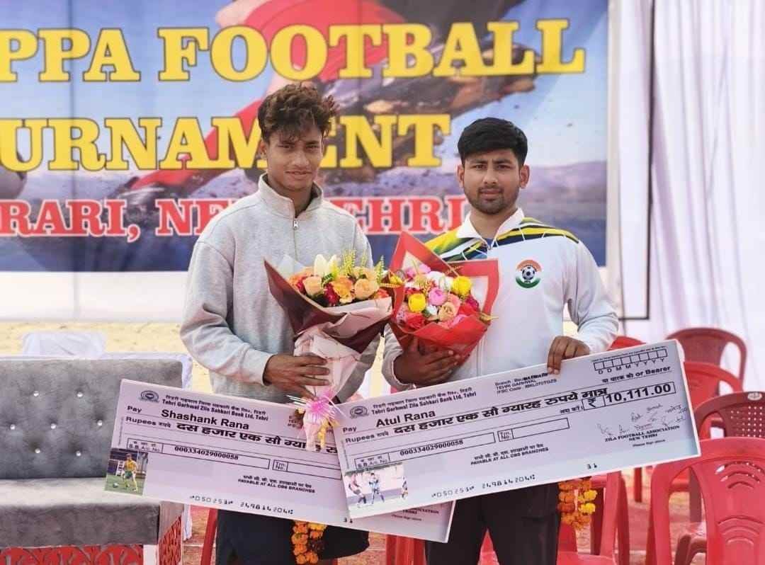 टिहरी के उभरते फुटबॉल खिलाड़ियों को मिला सम्मान, शशांक राणा और अतुल राणा को 10-10 हजार रुपये के चेक भेंट
