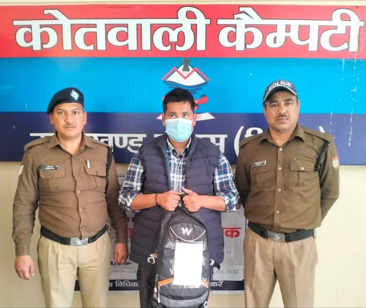 कैम्पटी पुलिस ने 5 लीटर कच्ची शराब के साथ एक युवक को पकड़ा